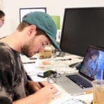 Have you ever played Exploding Kittens? Kevin S., Chris, Daryn, and Kristen mapped out the mechanics for a Big Sea version. Once they had their game plan down, Kevin got to work drawing the cards. Lots and lots (and lots!) of cards.